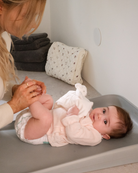 Create a cosy, clean changing space with our Changing Mat in Faded Grey. Designed with a smooth, seamless finish and made from safe PUR foam, this mat is completely non-toxic and free from endocrine-disrupting substances, so your baby stays protected and comfortable.