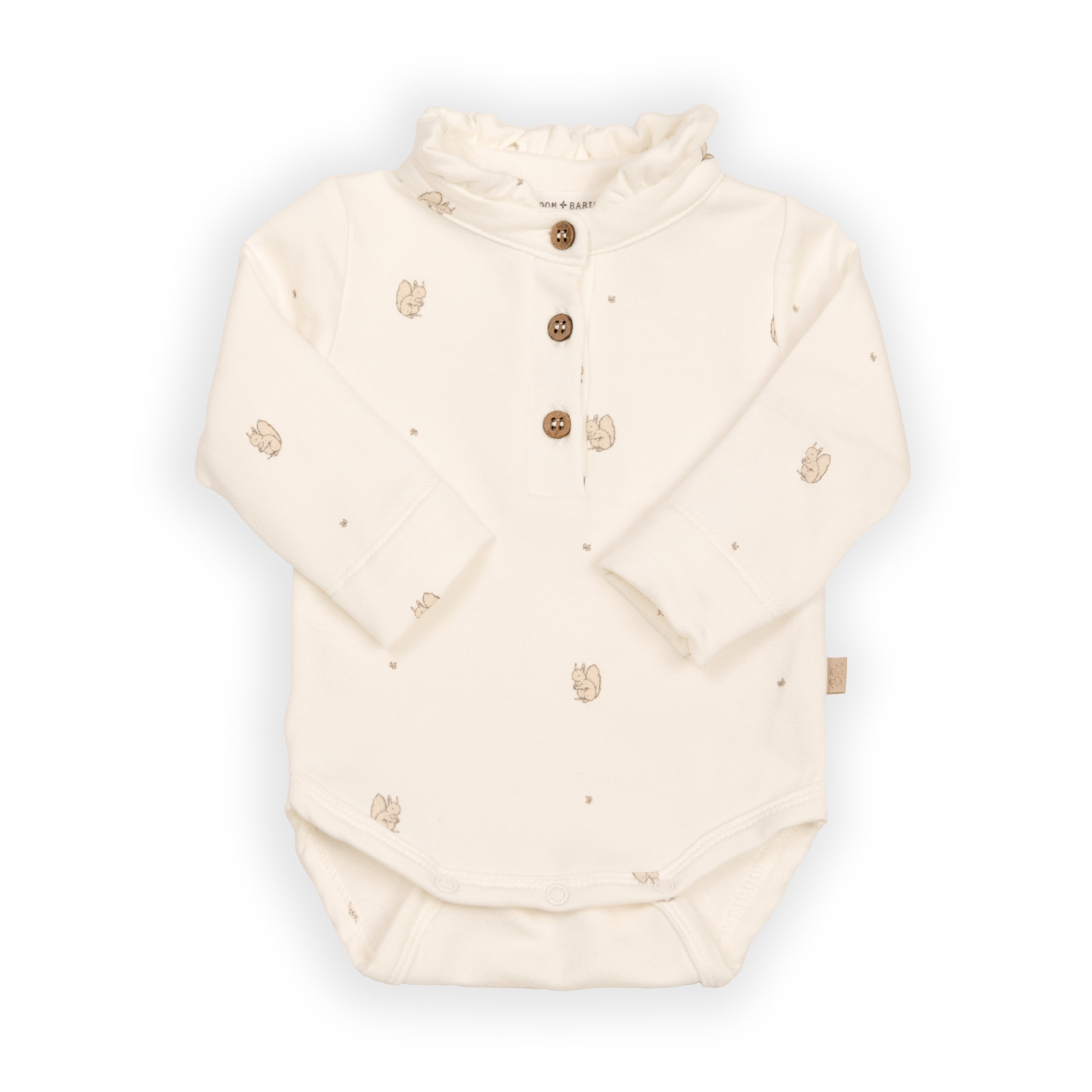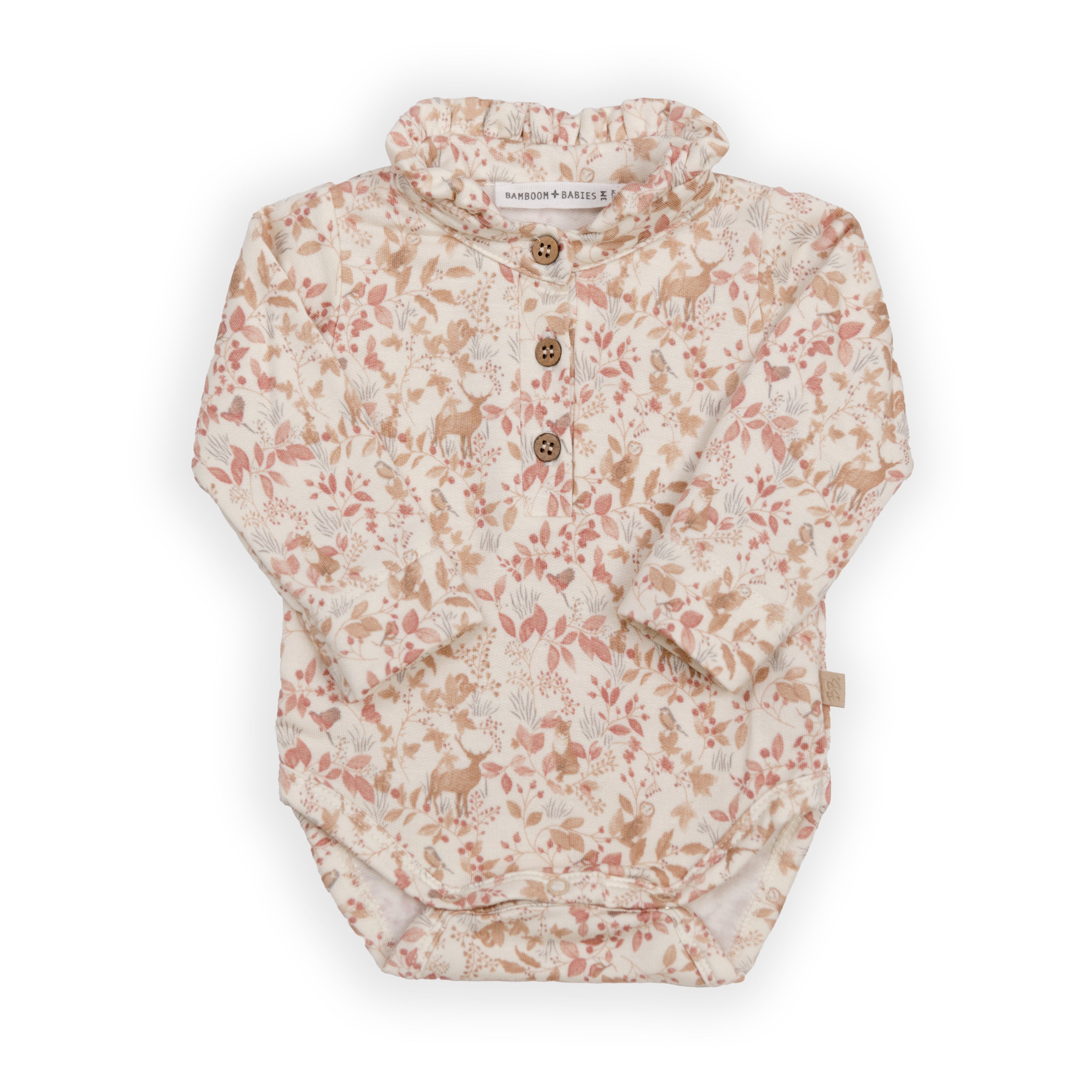 Polo bodysuit with ruffle collar in Autumn Forest Print