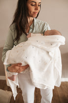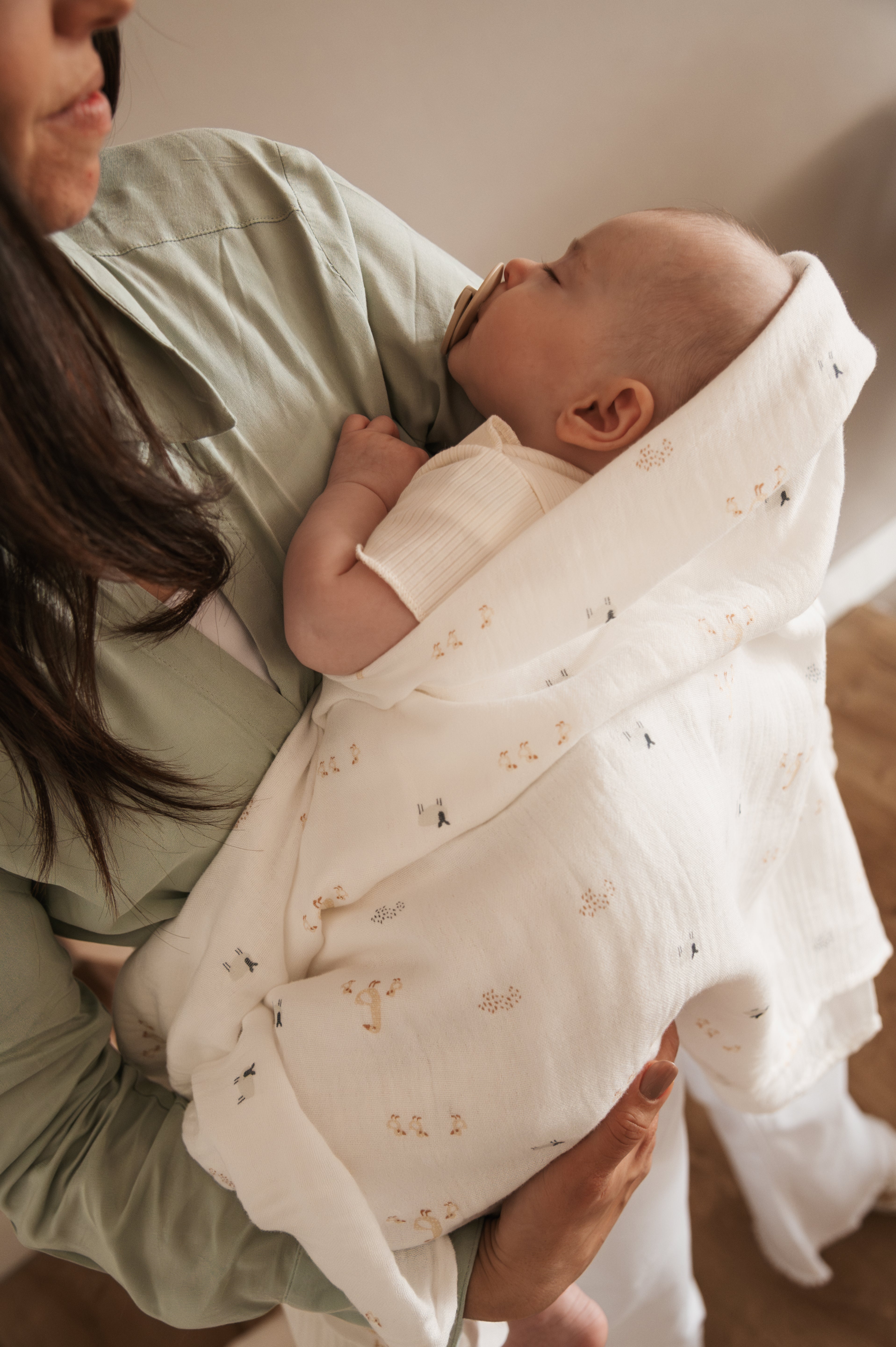 A pack of two ultra-soft, breathable swaddles made from natural bamboo yarn. Perfect for use as a sheet, blanket, towel, or play mat for at home or on the go. Gentle on baby’s skin and ideal for feeding, bathing, or travel.