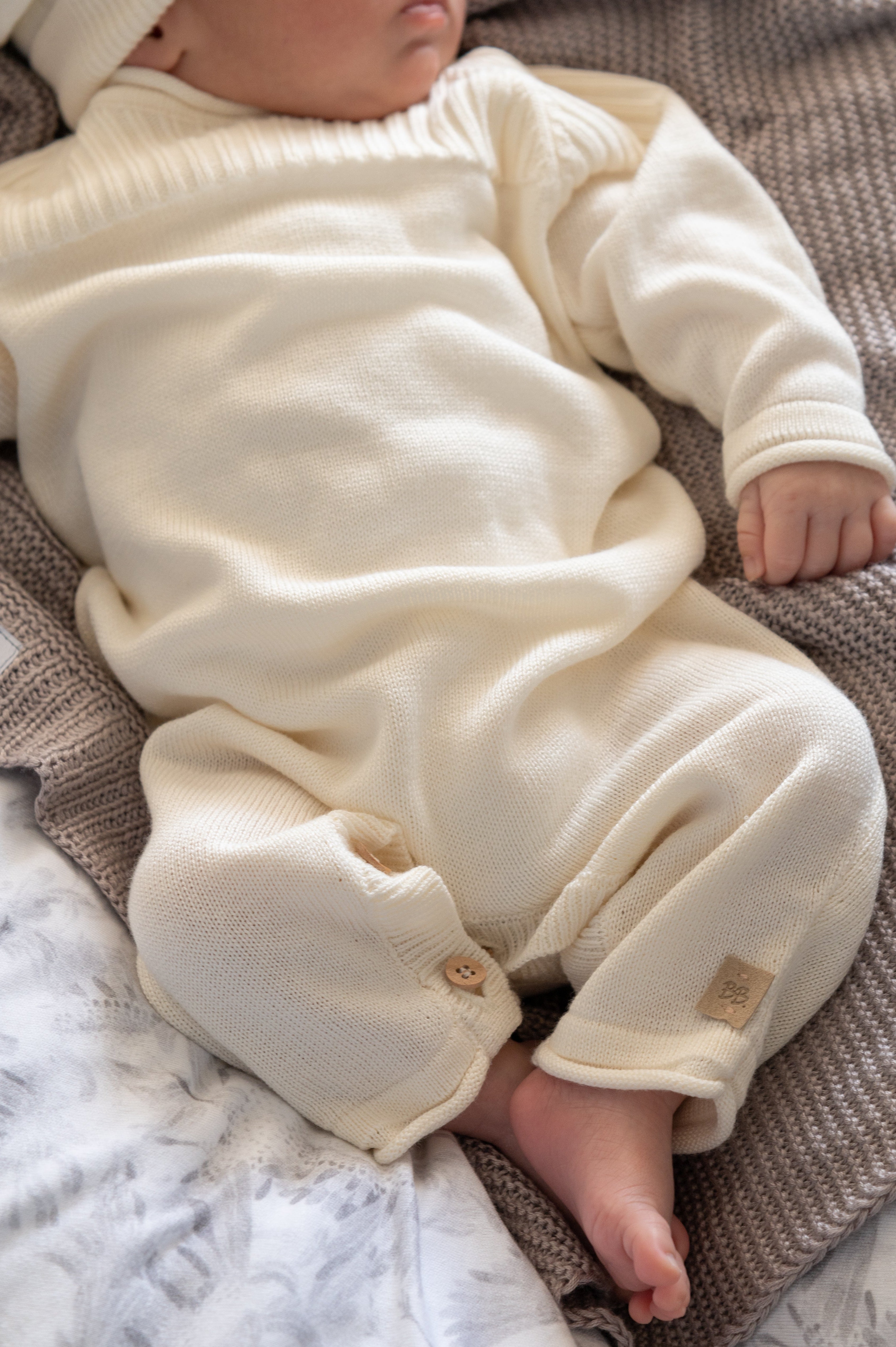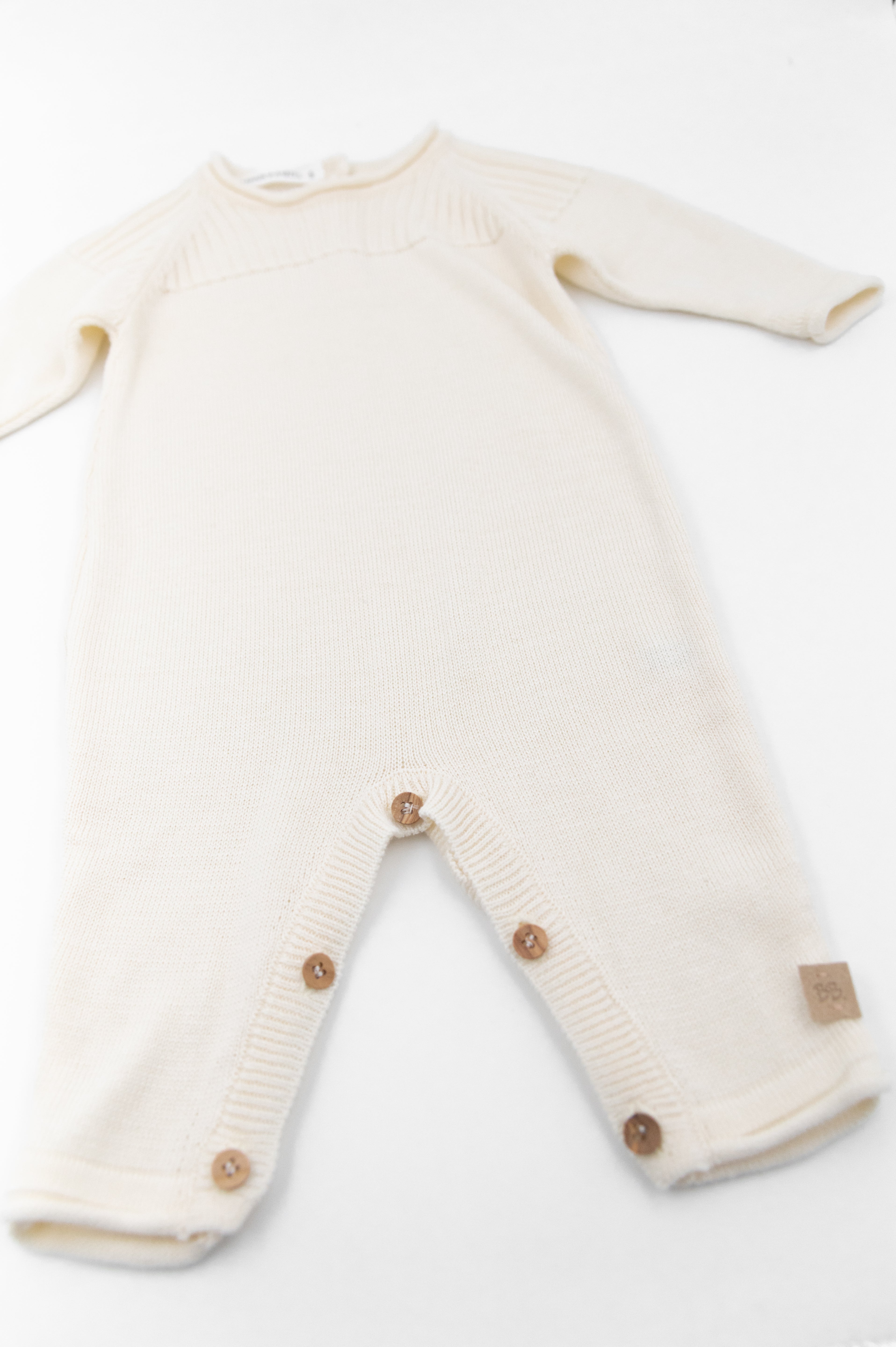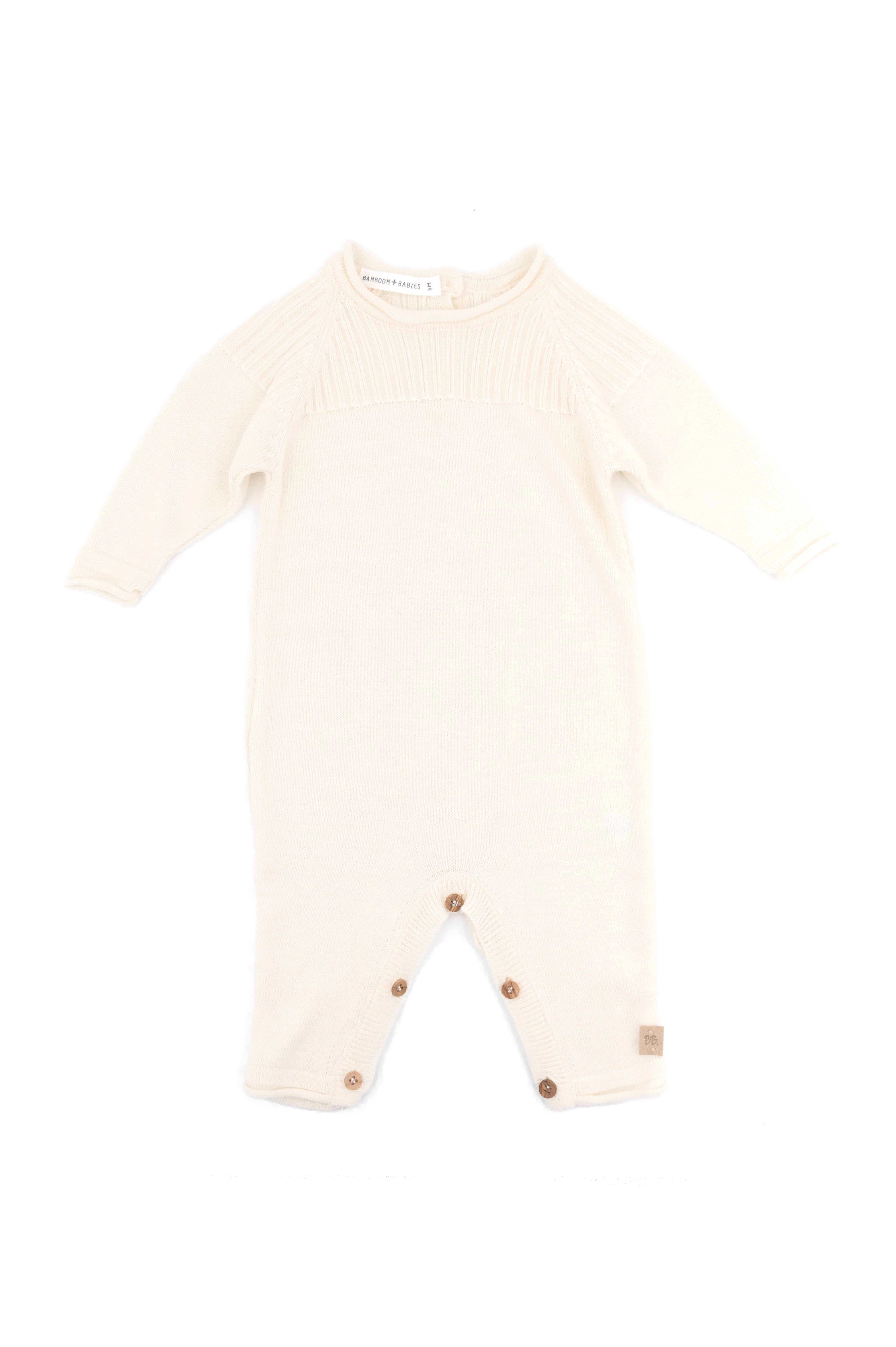 The perfect newborn essential, this front-opening knitted jumpsuit is made from natural bamboo fiber with temperature-regulating properties to keep your baby comfortable all year round. Designed for the first months of life, it features pretty wooden buttons for easy changing and a cosy, practical fit. Ideal for your hospital bag and perfect for both boys and girls, it combines softness, style and everyday comfort.