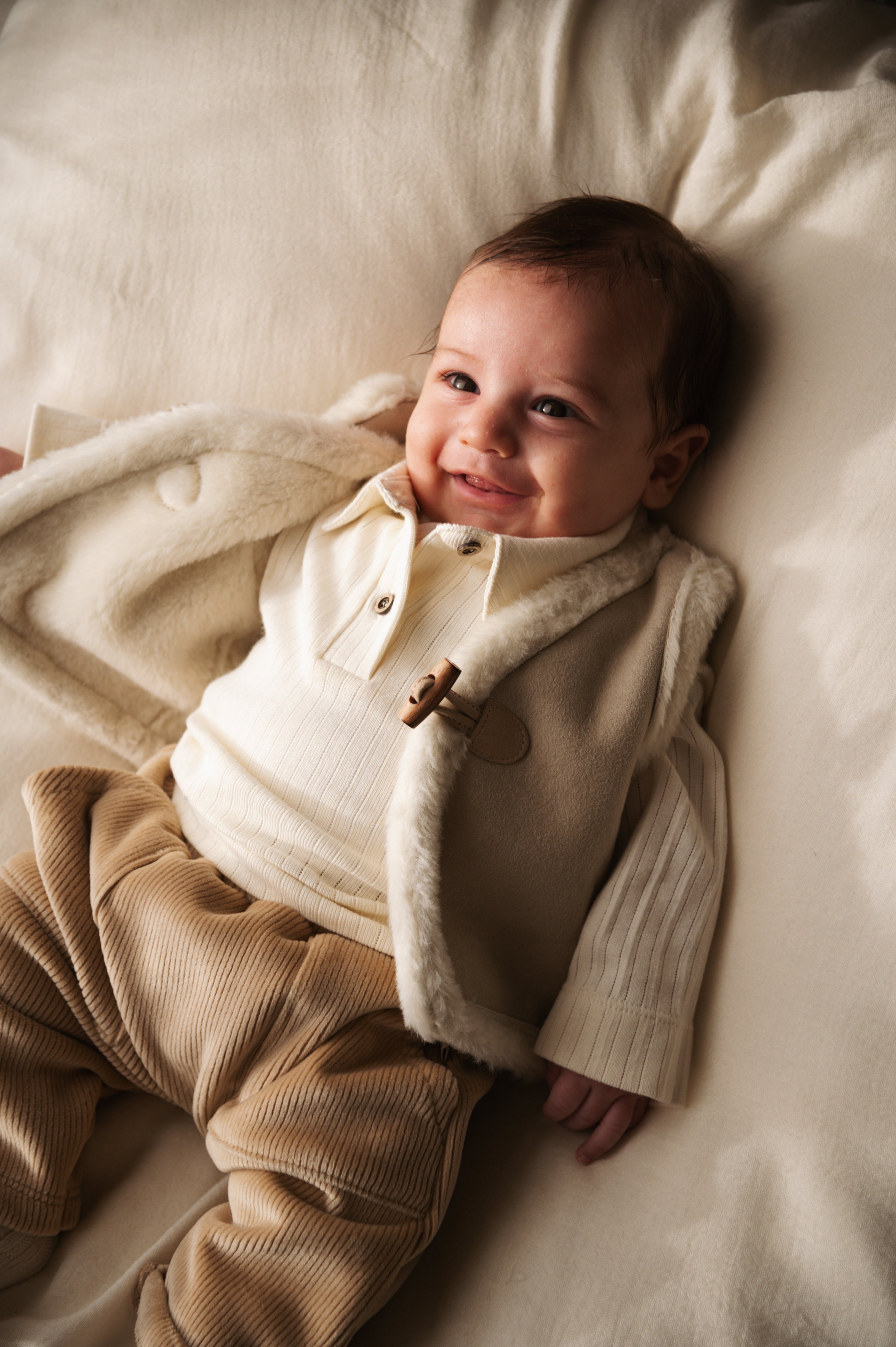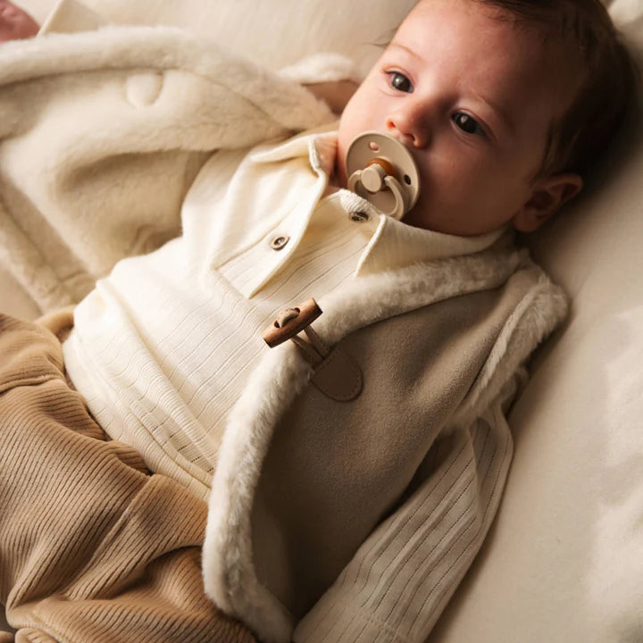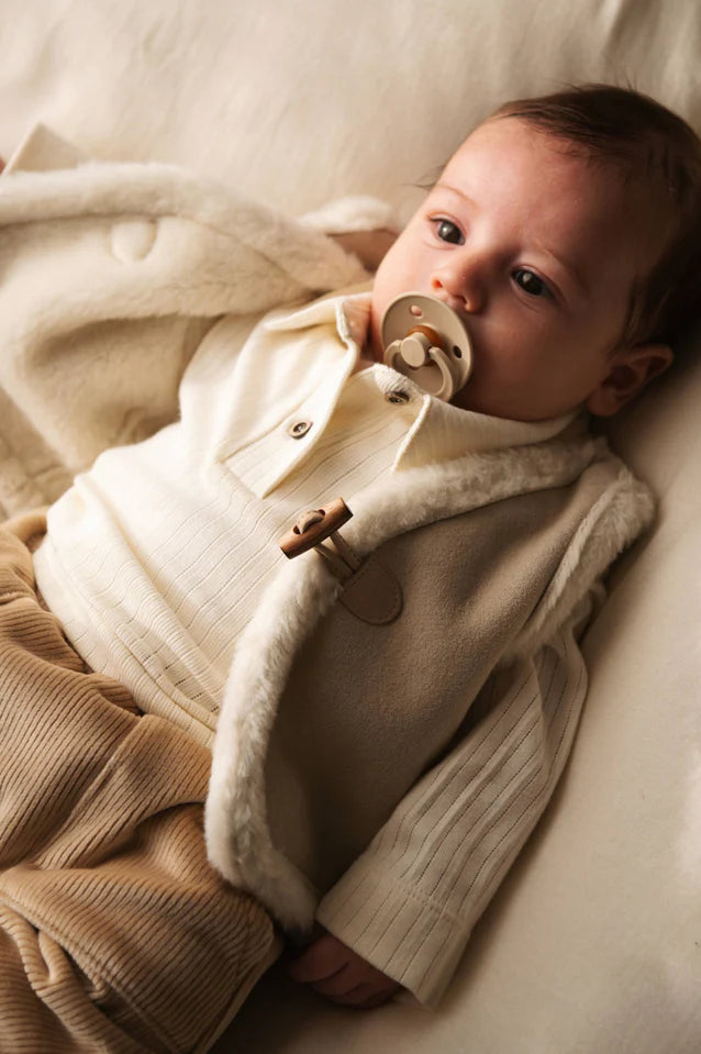 Crafted from sustainably sourced natural fabrics, this vest embodies quality, care and comfort, designed for the well-being of your little one through the colder months.