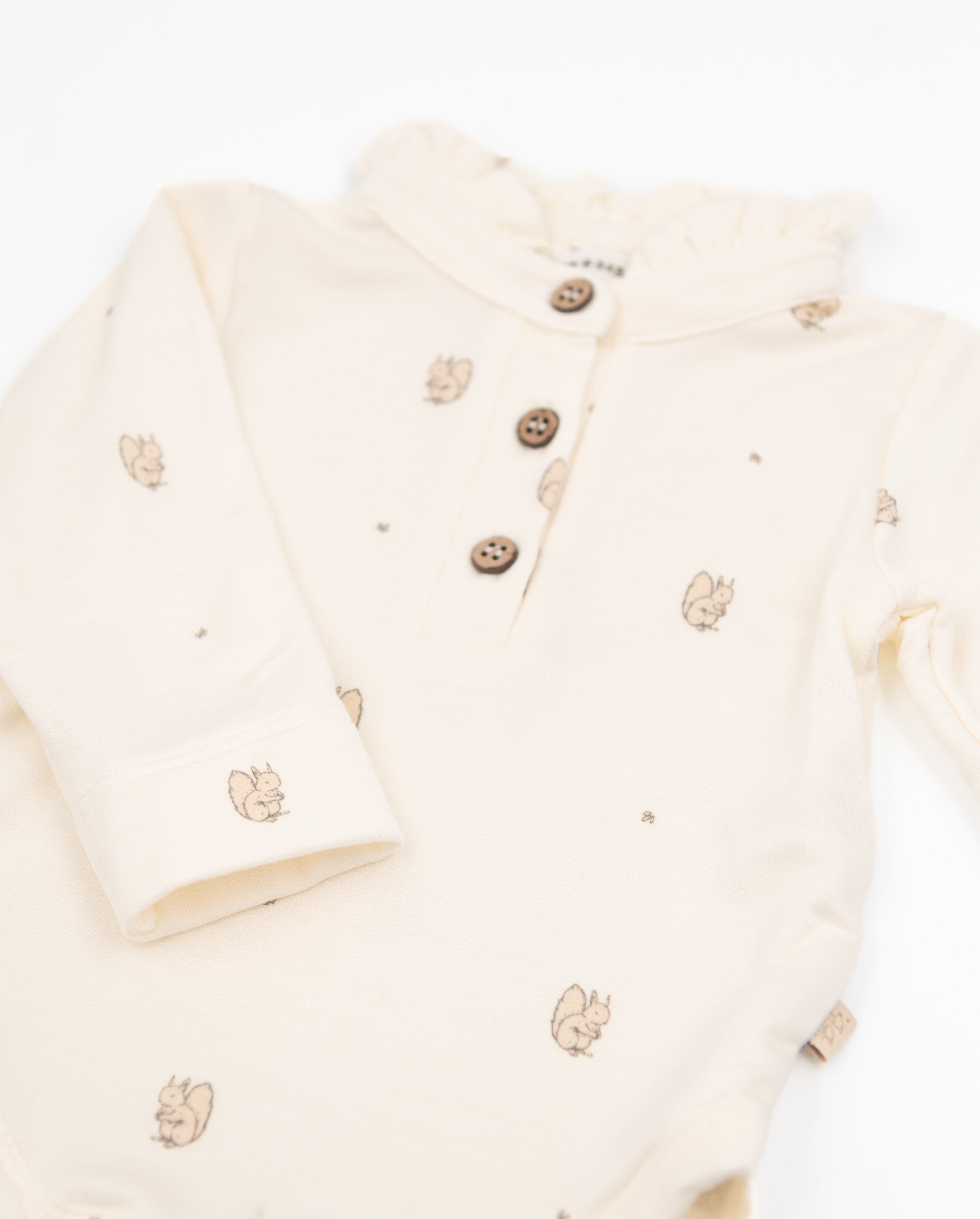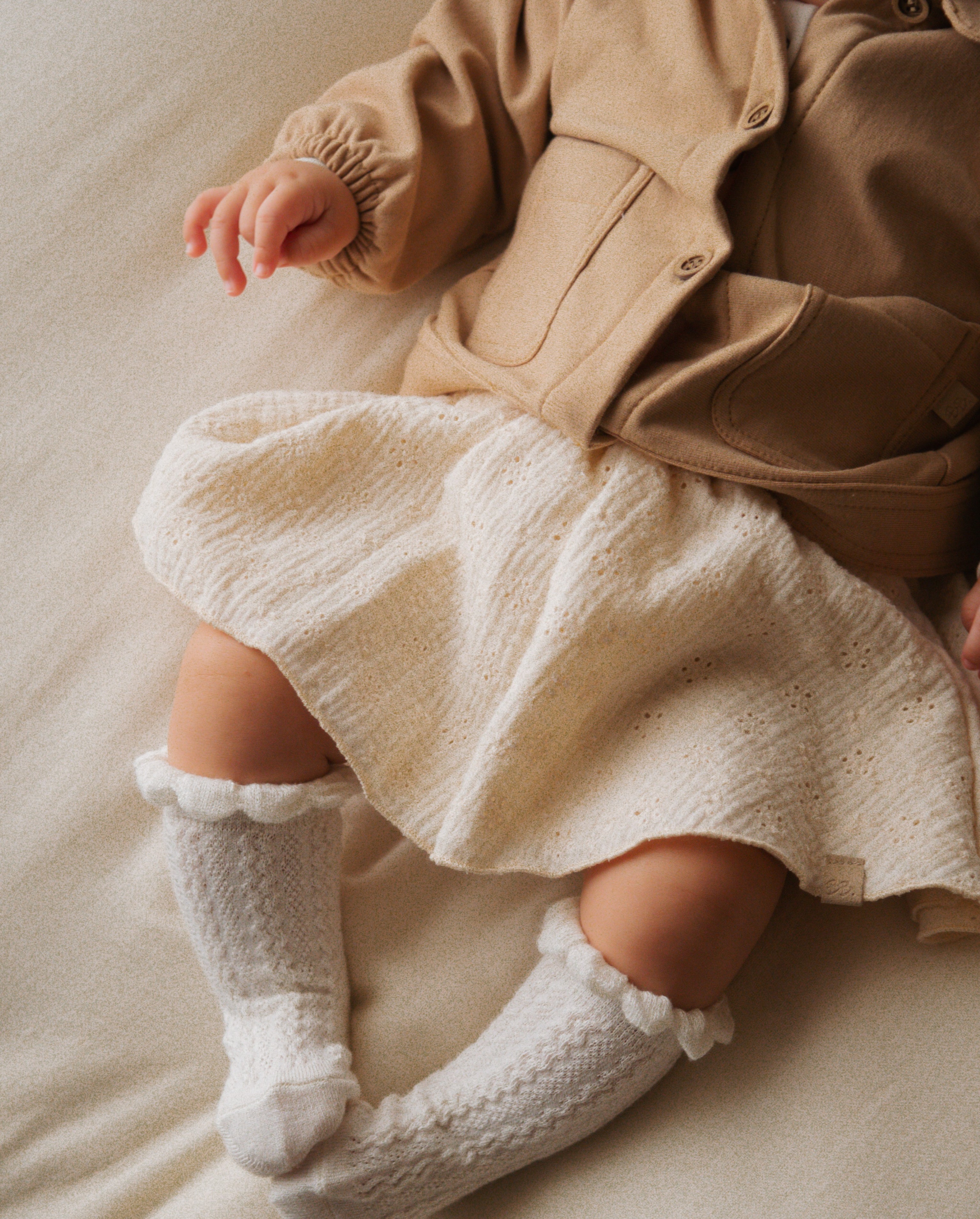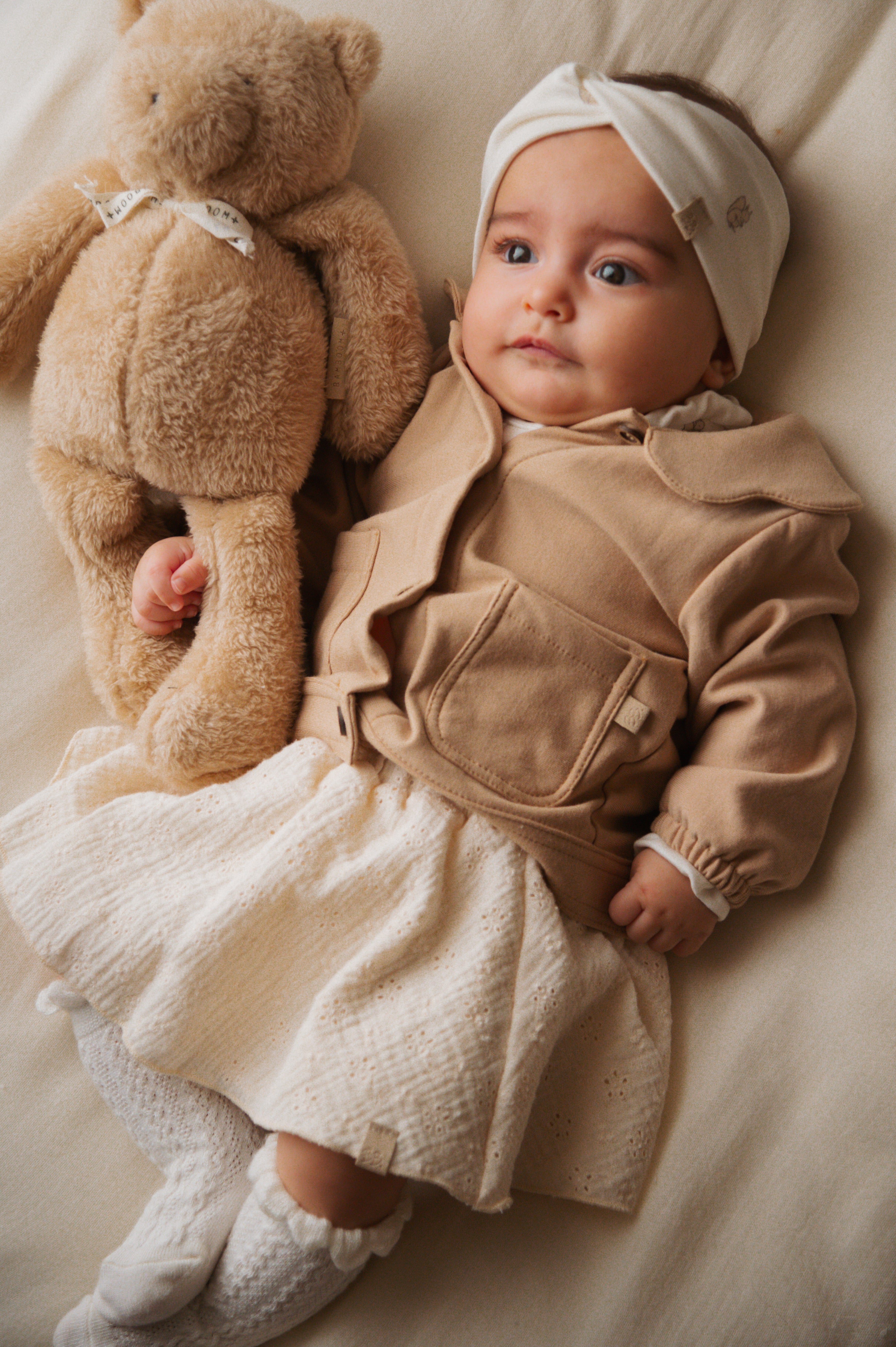 Thoughtfully finished with front pockets, wooden buttons and elastic cuffs, this jacket balances aesthetic appeal and functionality with ease. Ideal to layer over jumpsuits or pants, it accompanies every moment with high sustainable quality, comfort and timeless charm.