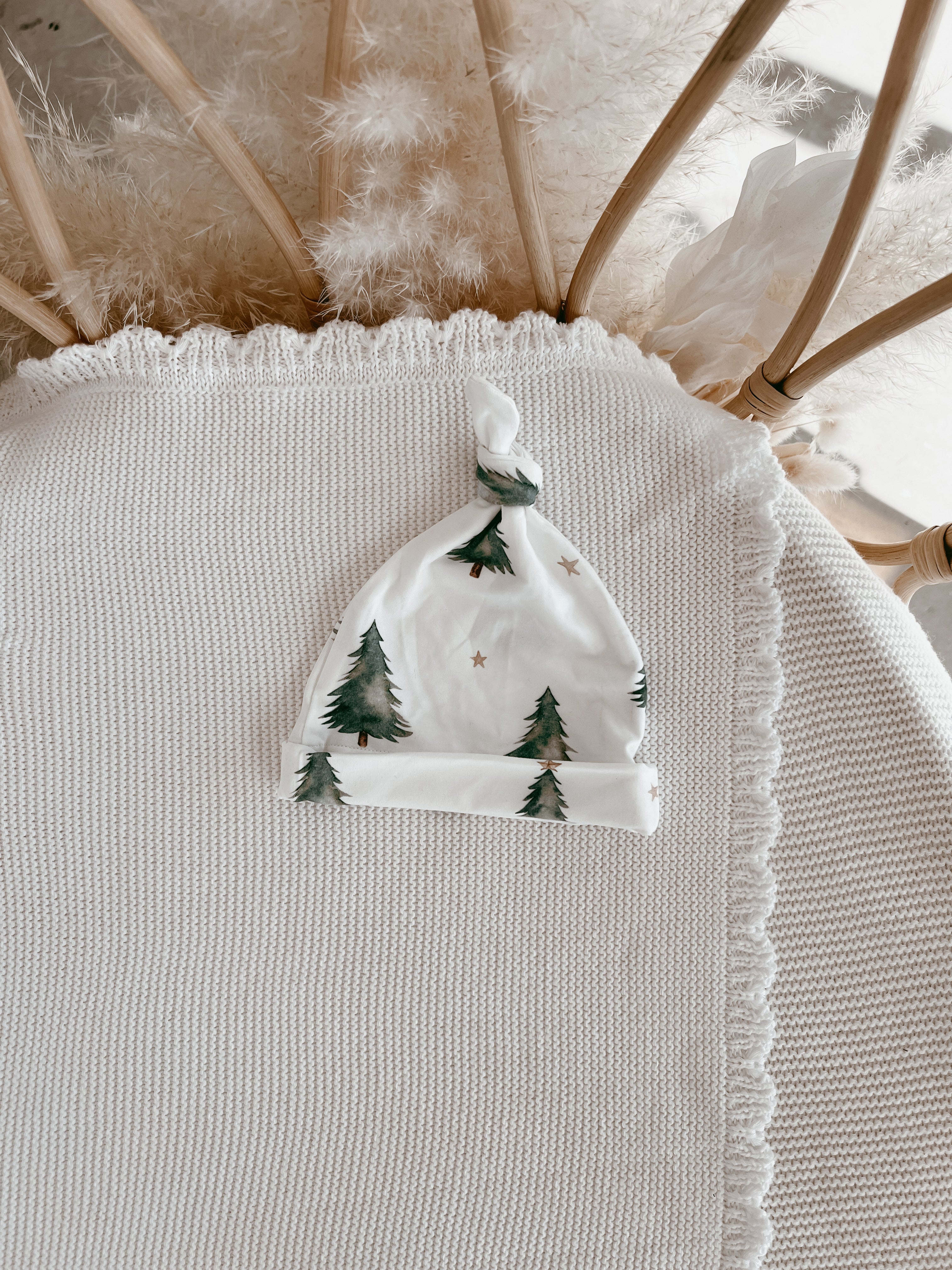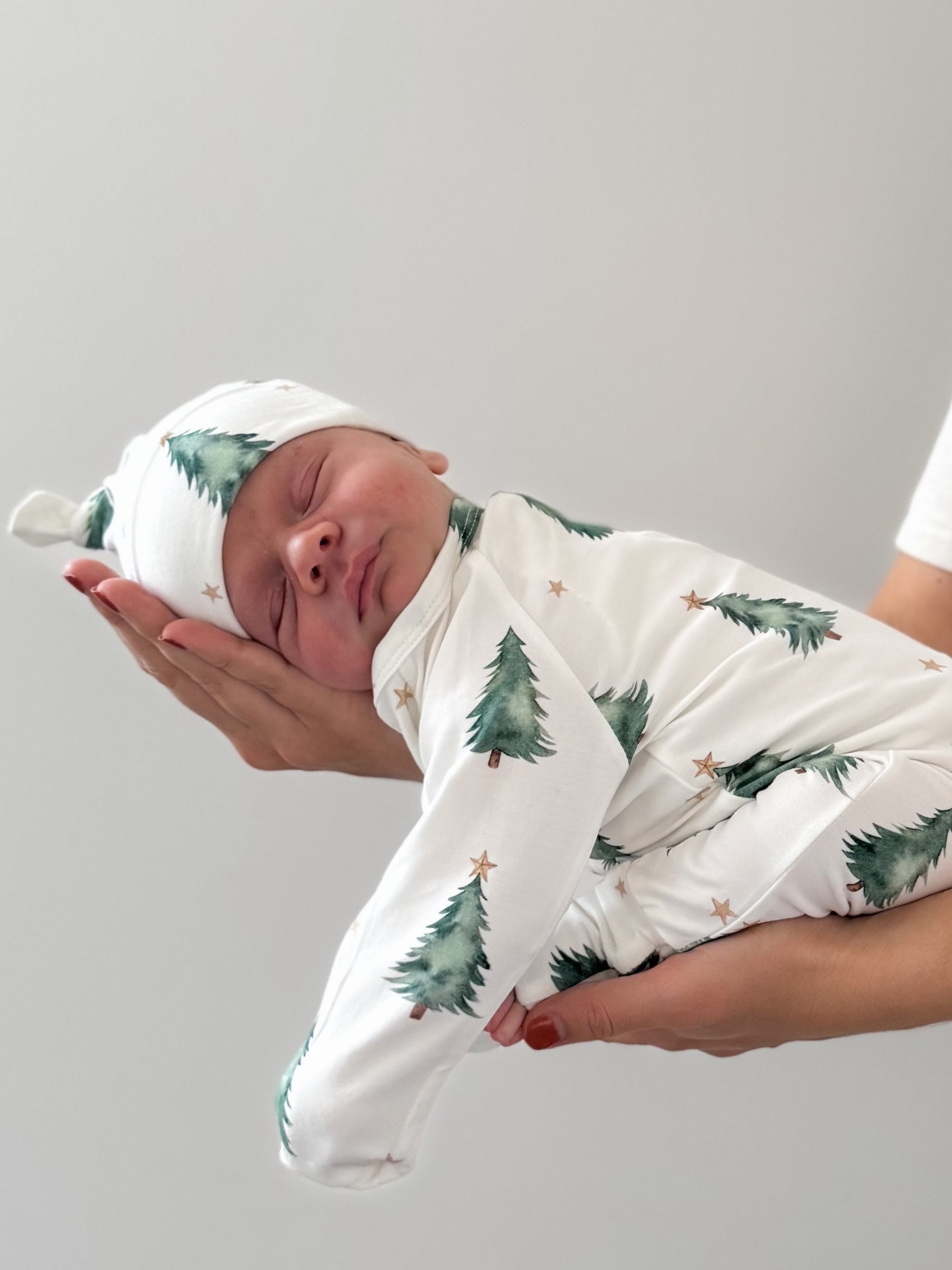 This newborn bamboo knotted beanie is crafted from a buttery-soft bamboo jersey blend and designed to perfectly match our Bamboo Grow suit Christmas Collection. Stylish, comfortable and made to last, it is a timeless wardrobe essential for your little love.