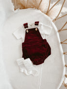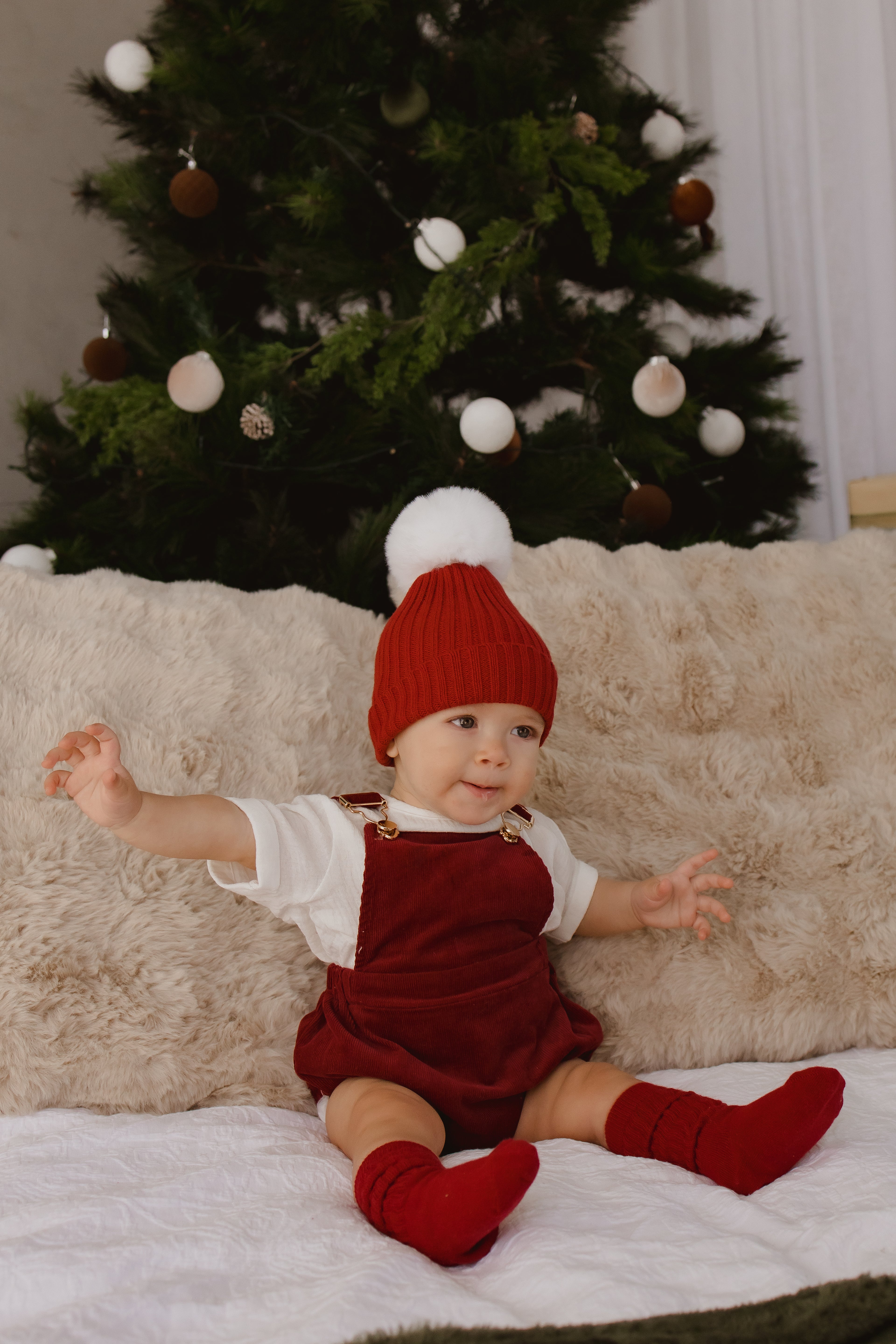 Dress your little one in festive style with these charming Christmas overalls. Crafted from luxuriously soft burgundy fabric, they combine comfort, timeless holiday charm and a sprinkle of seasonal magic.