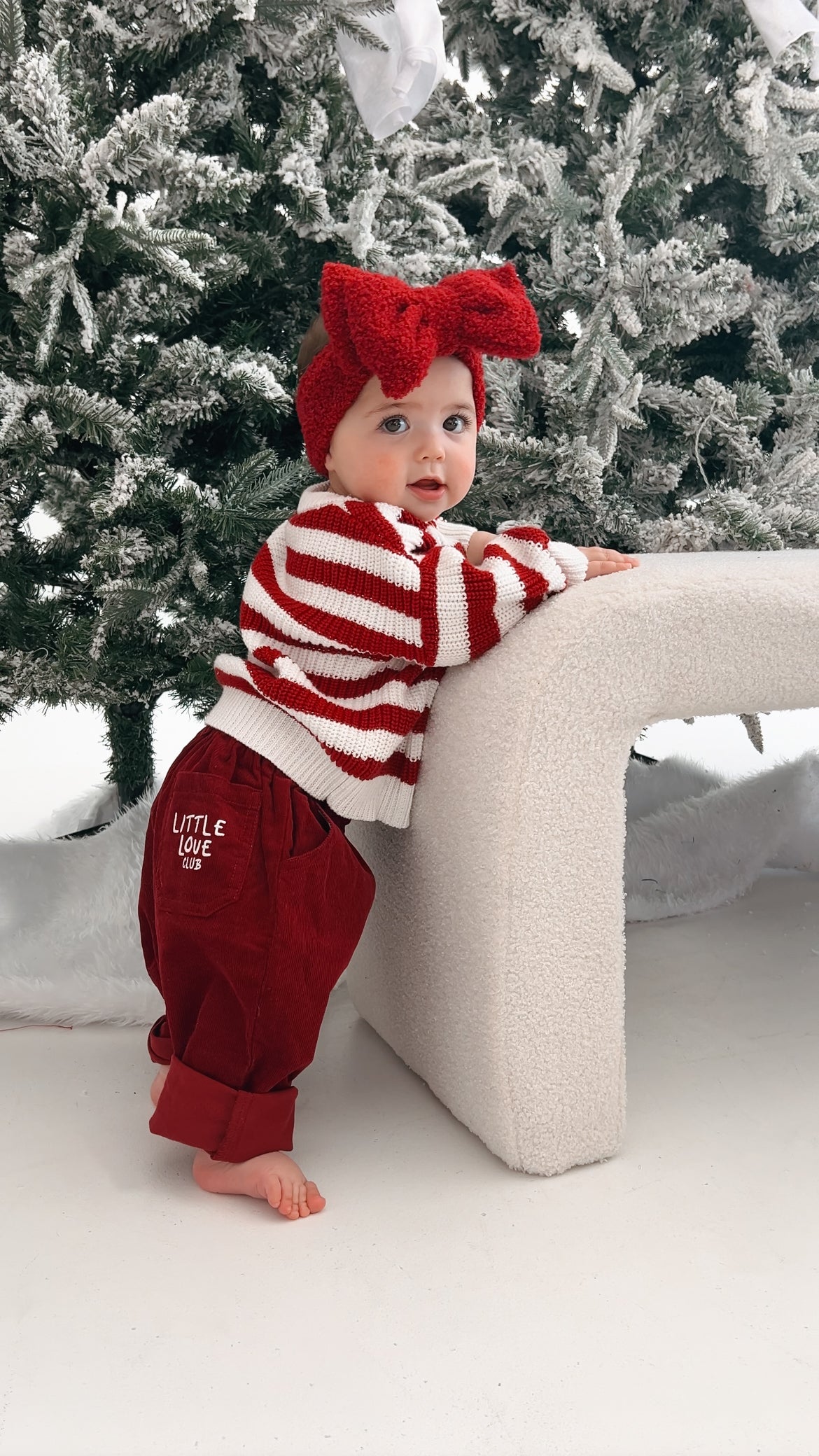 Dress your little one in style with this Burgundy Corduroy Jeans. Soft yet durable, they are finished with a sweet ‘Little Love Club’ embroidery on the back pocket. A classic piece that pairs perfectly with the Reindeer Mini Knit Sweater.