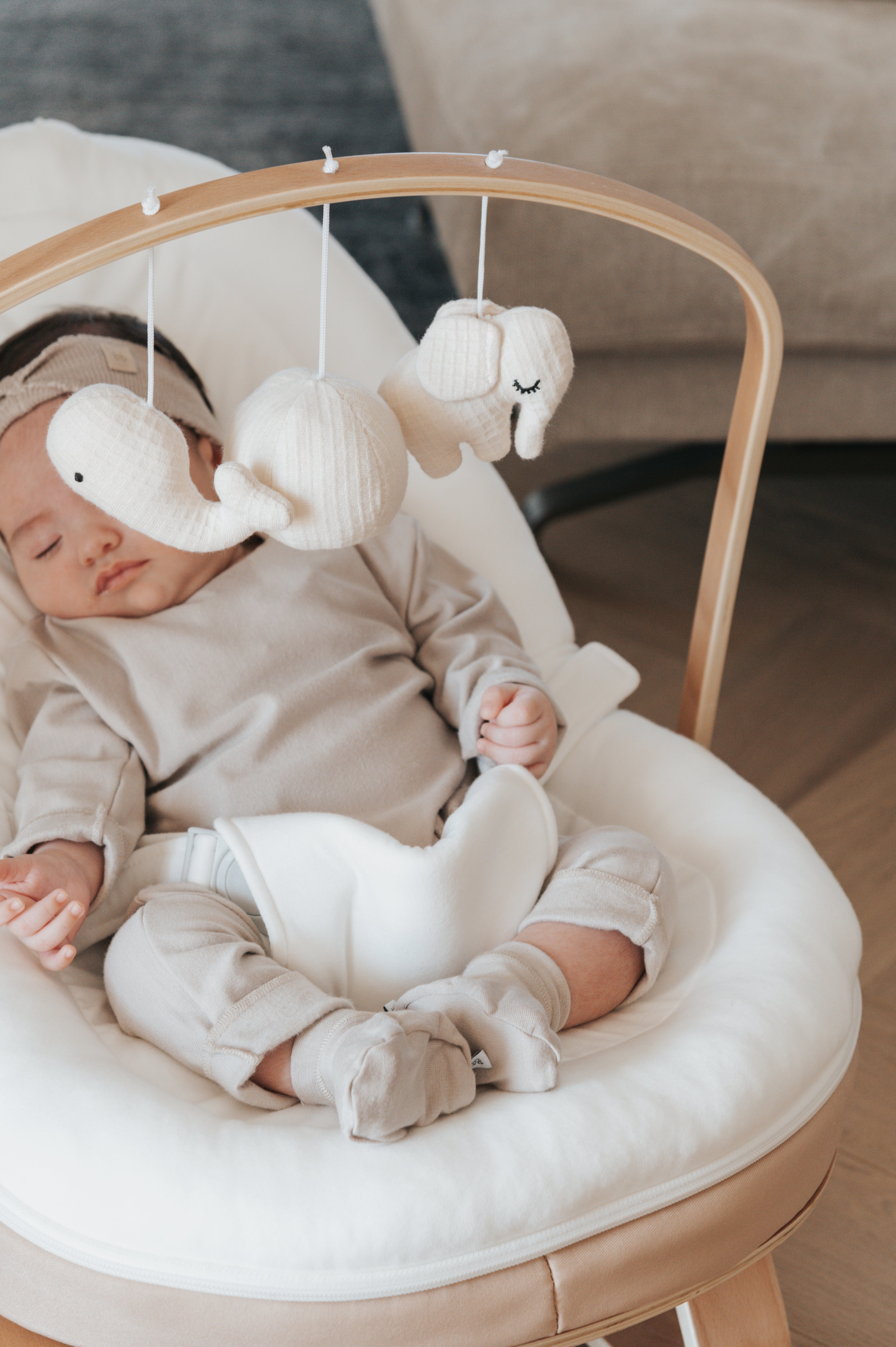Including Toy Bar & Toys, designed to stimulate the newborn's senses in total safety. Made of natural wood, the arch perfectly complements the design of the baby bouncer and includes soft bamboo Toys , ideal for accompanying your Child's moments of relaxation and play.