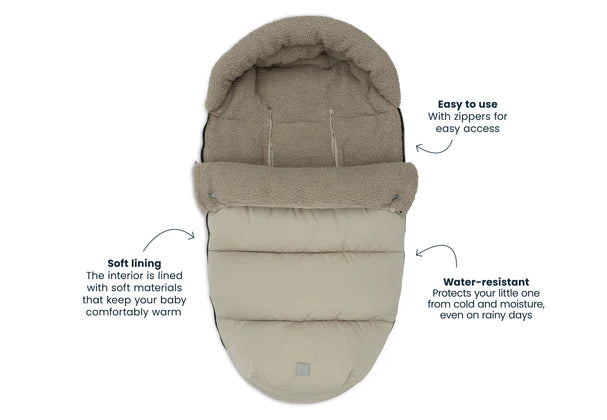 This footmuff is a true must-have for cold days in the buggy or stroller. It features convenient openings for both 3 and 5 point belts, ensuring a perfect fit and safe travels. The two-way zipper makes it easy to open, so you can comfortably place your baby inside or take them out again.