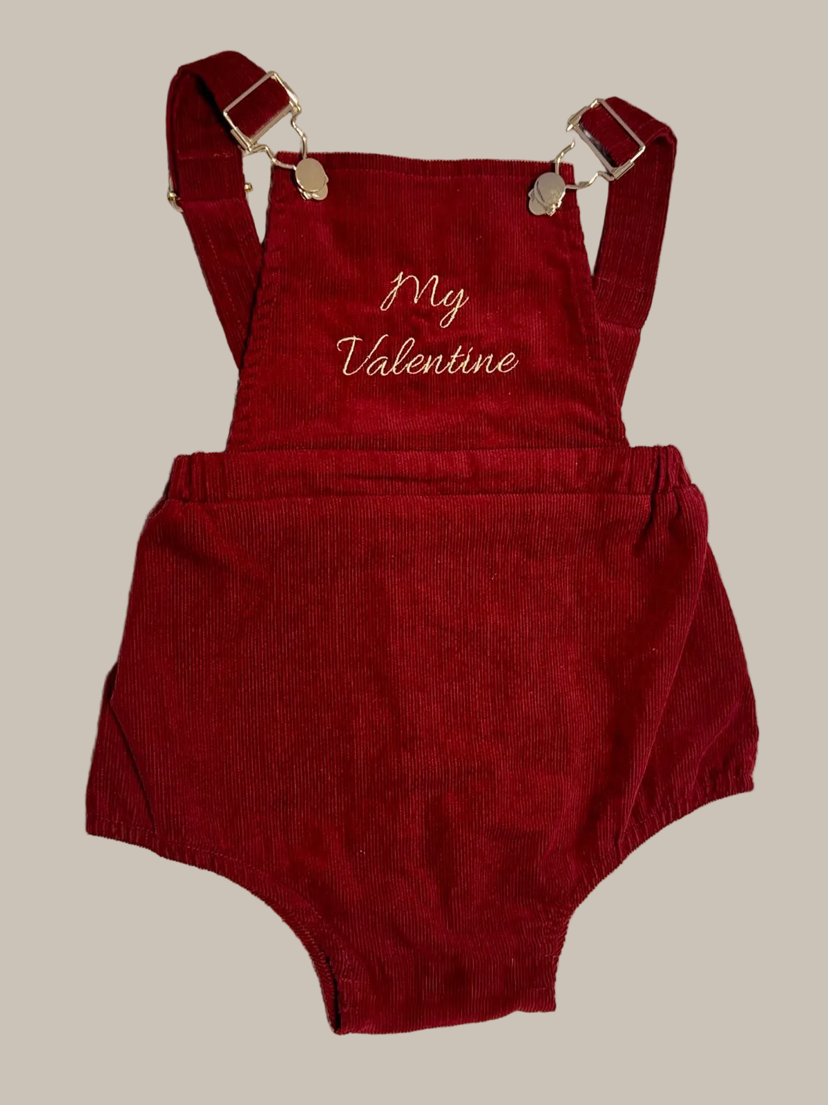 ‘My Valentine’ Burgundy Corduroy Dungaree