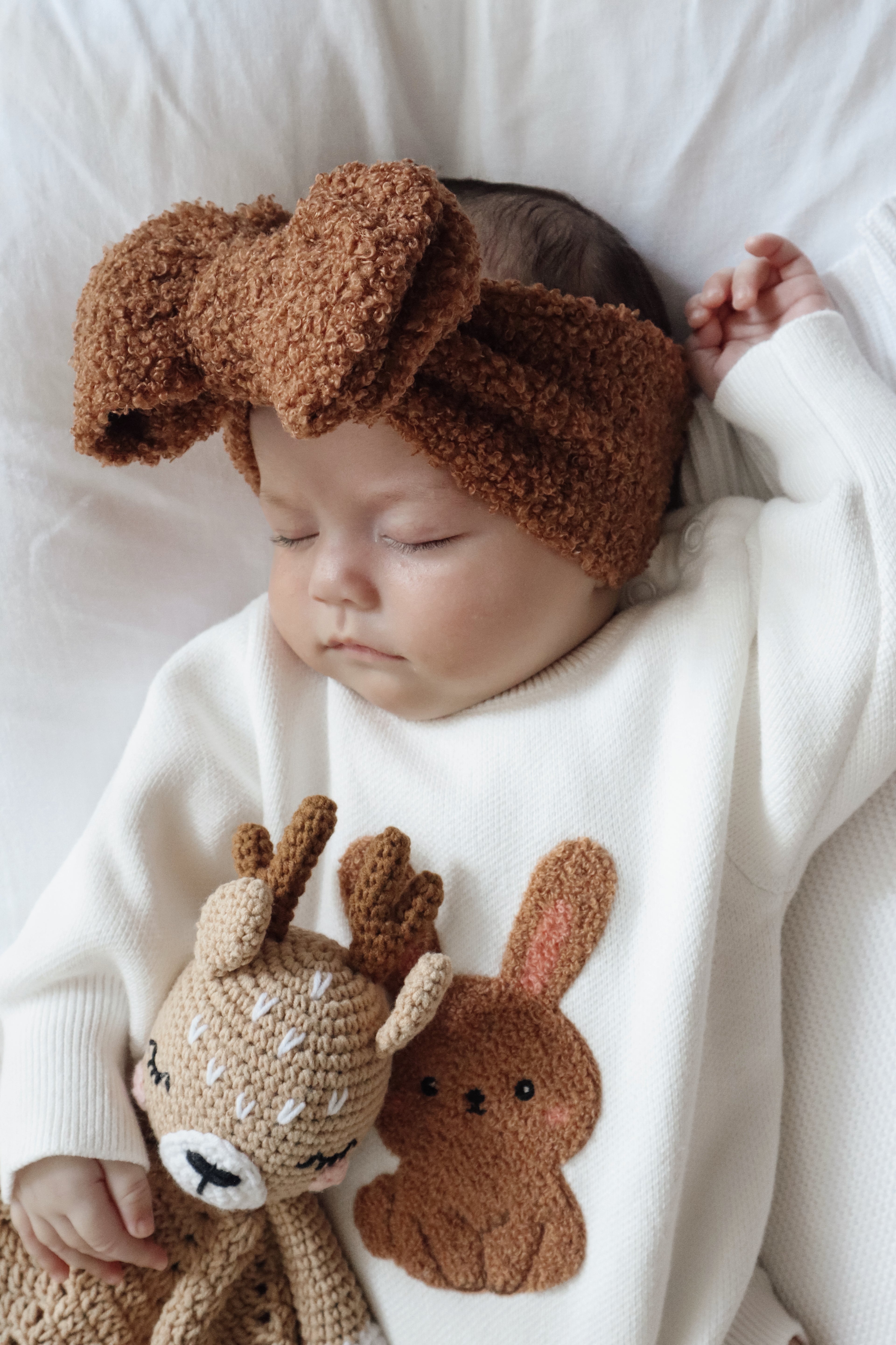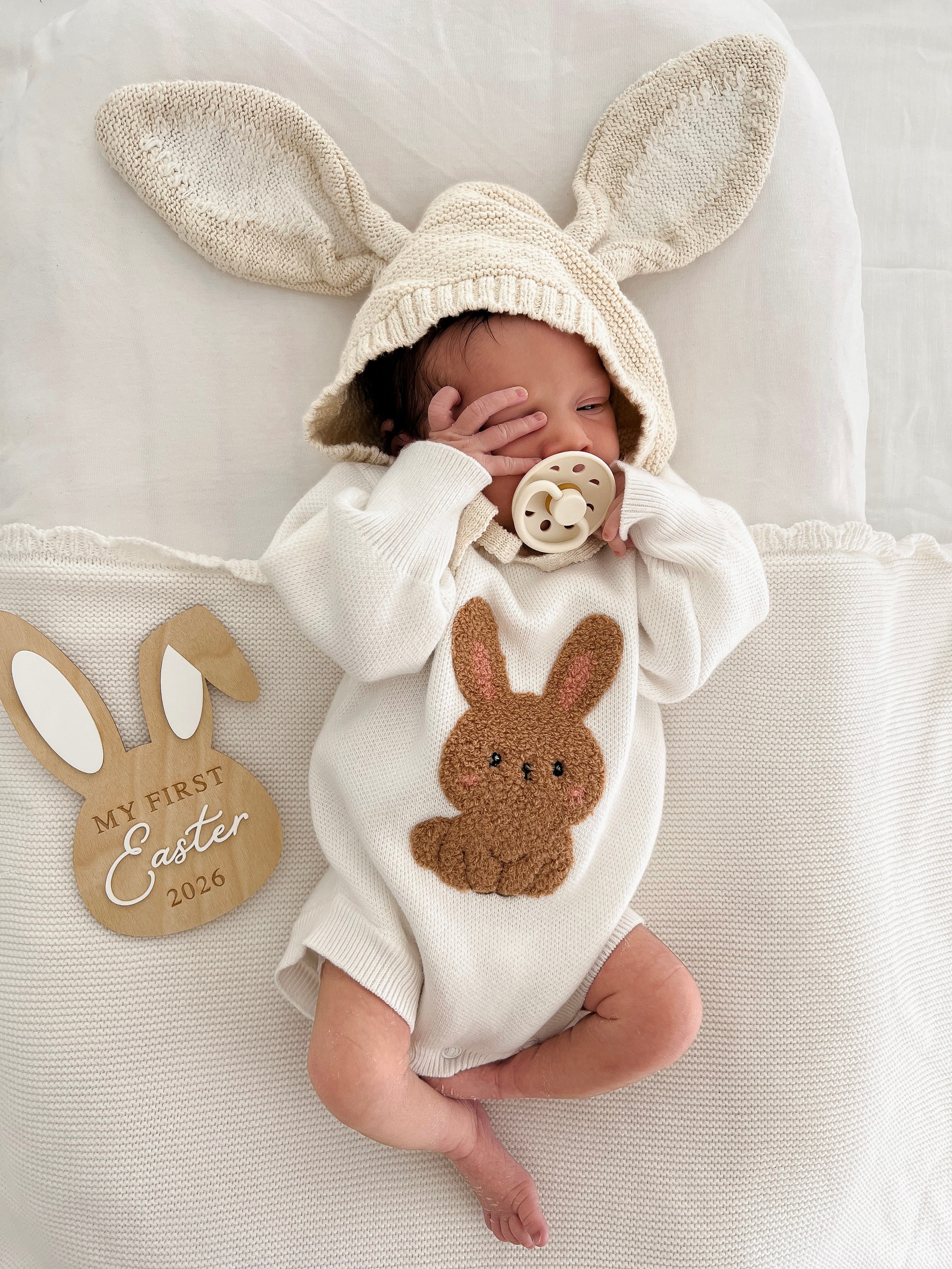 Our cosy Bunny Long Sleeve Knit Romper is the perfect seasonal piece for your mini. Made from beautifully soft 100% cotton, this timeless knit is a must-have for your little one’s capsule wardrobe.
